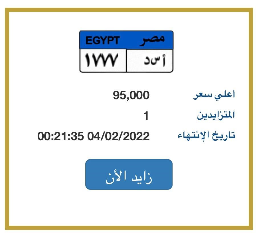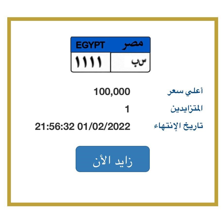 أعلى سعر للتزايد: 100.000 جنيه مصري
