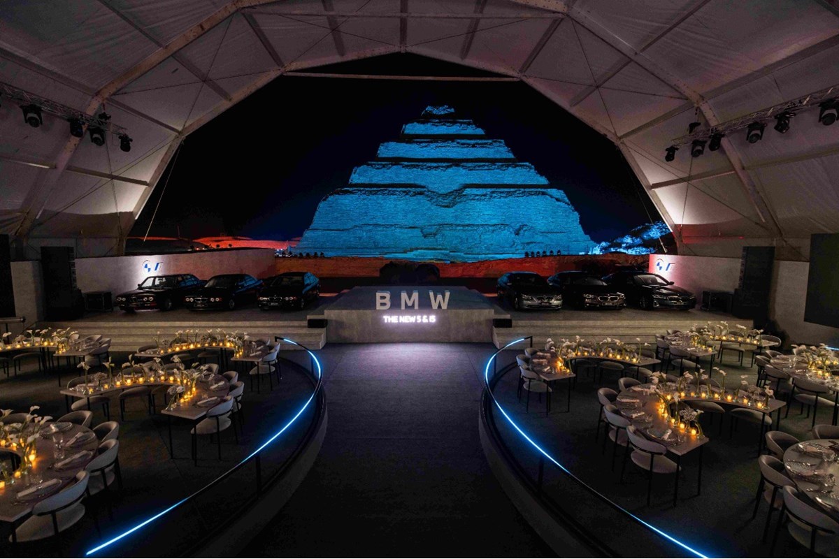 اختارت جلوبال أوتو، هرم زوسر ليكون خلفية مميَّزة لحفل إطلاق الجيل الثامن الأحدث من الفئة الخامسة، بالإضافة إلى السيارة الكهربائية بالكامل i5، وذلك لما يمثِّله هذا الهرم الشاهد على عظمة البناء عند القدماء المصريين مِن أهمية بالغة؛ فهو أوَّل هرم بناه المصريون على الإطلاق وهو أقدم الأهرامات على مرِّ التاريخ، والذي يعود بناؤه إلى قرابة ٤٧٠٠ عامٍ مضت، تمامًا مثل الفئة الخامسة مِن بي إم دبليو التي قُدِّمت في عام 1972 لتكون أول سيارة بي إم دبليو تحمل مسمى Series، كما أنها أول سيارة سيدان تنضم لـBMW Motorsport، تحديدًا الموديل 530 MLE في عام 1976، مما يعكس تراثها الغني مِن الأداء القوي والطابع الرياضي الأصيل.