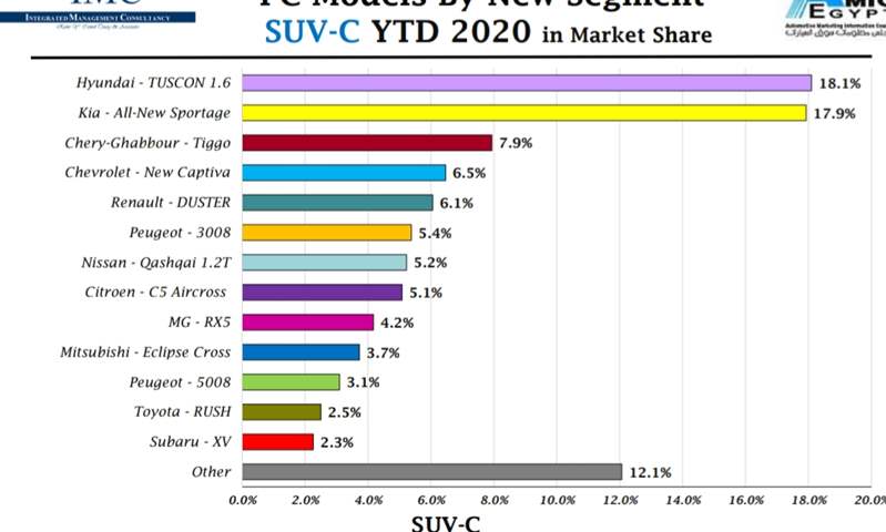 تفوقت مبيعات سيارة هيونداي توسان على بقية الطرازات الأخرى في فئة السيارات الـ SUV-C خلال التسعة أشهر الأولى من العام الجاري 2020، حيث استحوذت على نسبة 18,1% ما يساوي 4982 وحدة، من إجمالي مبيعات تلك الفئة الذي بلغ 27532 وحدة، وذلك وفقًا لما ذكره تقرير مجلس معلومات سوق السيارات "أميك" الصادر عن شهر سبتمبر الماضي.