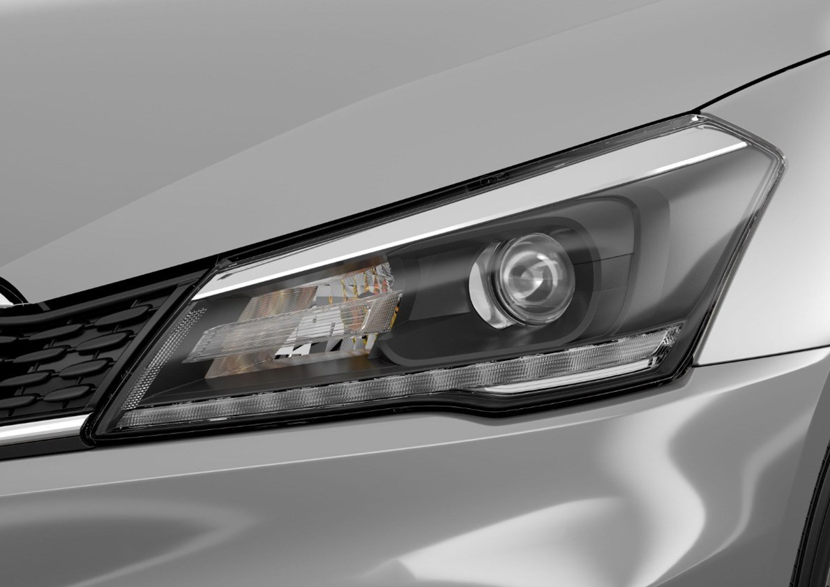 مصابيح أمامية هالوجين، ضبط مستوى الضوء الأمامي (يدوي)، إشارات انعطاف بمرايا الأبواب، إطارات مقاس 15 بوصة.