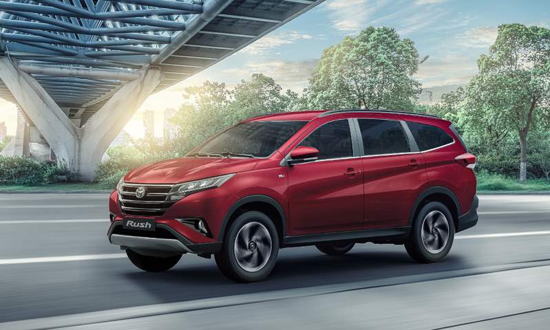 أما "Rush" فهي سيارة مدمجة الحجم يمكن إعتبارها ضمن فئة الكروس أوفر الخدمية الرياضية, وهي ذات ثلاثة صفوف من المقاعد, وتستمد قوتها من محرك 1,5 لتر بقوة 103 حصان وعزم 138 نيوتن.متر يتصل بناقل أتوماتيكي من 4 نسب أمامية لدفع السيارة بالعجلات الخلفية, وقد رصدت أسعارها في بداية نوفمبر الحالي بفئتين كالتالي: