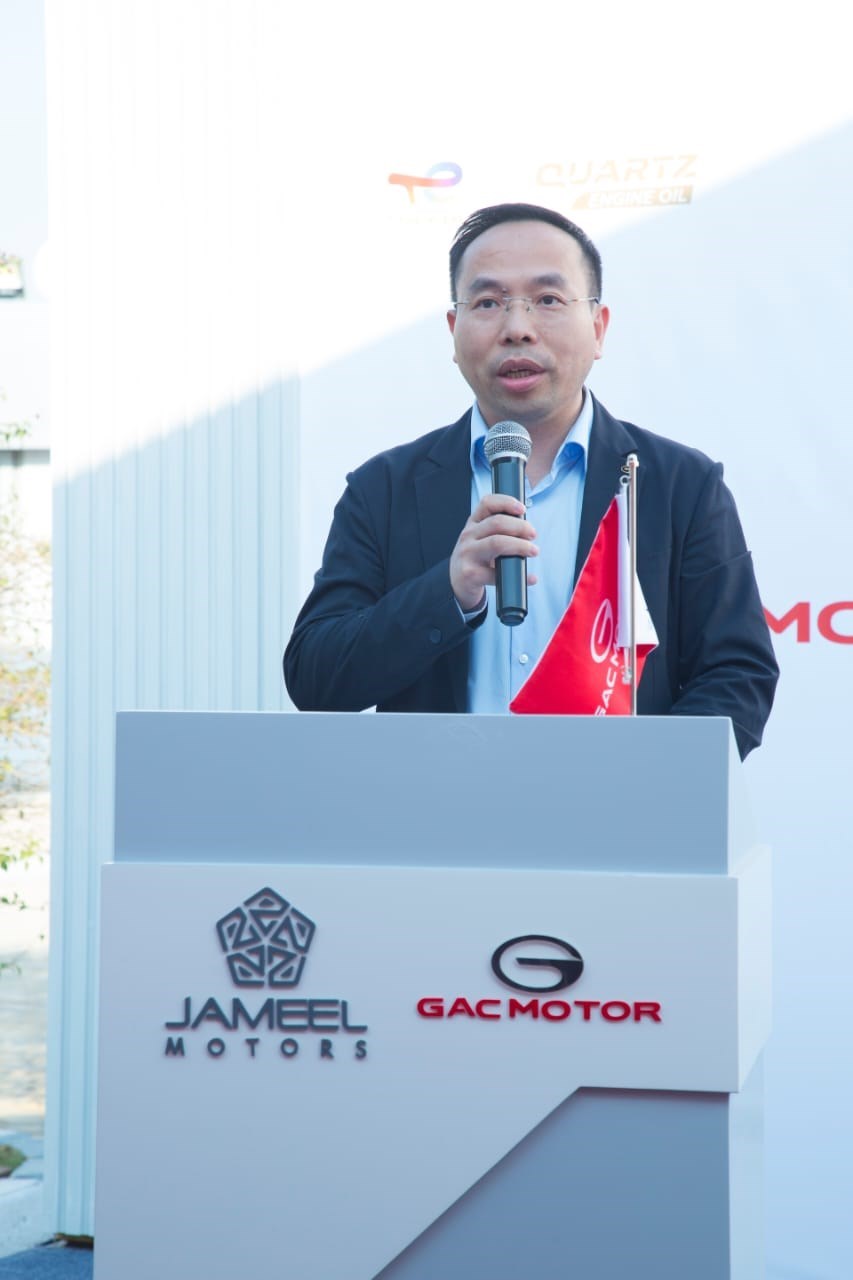 ثم كانت الكلمة الثانية في الحفل: لـ وانغ شونشينغ، نائب المدير العام لشركة GAC موتور الدولية، الذي أعرب عن سعادته لمشاركته مجموعة عبد اللطيف جميل وإدارتها العليا في الاحتفال بافتتاح أول مركز خدمة متكامل لعلامة GAC في مصر. وصرح قائلا: "نحن متحمسون لإطلاق علامةGACفي مصر. حيث تتمتع البلاد بإمكانيات نمو كبيرة، ونعتقد أن سياراتنا وخدماتنا ستحظى بشعبية هائلة لدى العملاء المصريين."