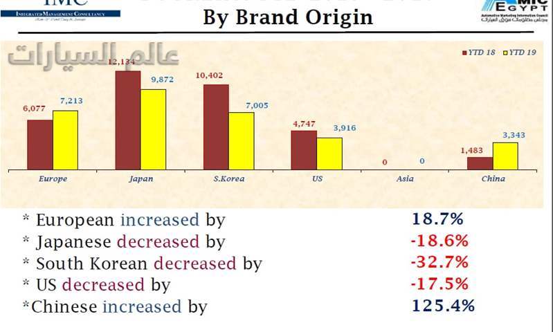 وذلك خلافاً للصناع الصينيون الذين يعملون على تقديم العديد من الطرازات التي تغطي مختلف الفئات التي يحتاج إليها المستهلك المصري وبتسعير جيد، فكانت النتيجة زيادة مبيعاتهم بنسبة ملفت بلغت 125.4% للأشهر الأربعة الأولى من العام الحالي مقارنة بنفس الفترة من 2018، وهي زيادة بلغت 1860سيارة، أما الطراز الصيني الأول في مصر لشهر إبريل فما زال محافظاً على مركزه من مارس الماضي BYD F3 التي بيع منها 460 وحدة، ليأتي في المركز التالي شيري إمبريال بعدد 334 سيارة، ثم في المركز الثالث شيري تيجو التي كانت في المركز الثاني في مارس الماضي بعدد 173 وحدة.