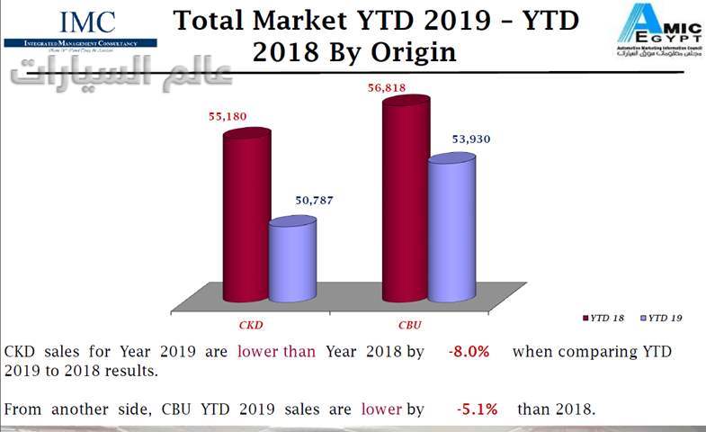 وبالمثل، فأن مبيعات السيارات المستوردة محليا سجلت 48.219 خلال الـ7 أشهر الأولى من عام 2019، مقابل 50.787 وحدة خلال الـ8 أشهر الأولى من العام ذاته، فنجد أن مبيعات السيارت المجمعة محليا سجلت 2.568 وحدة خلال أغسطس.