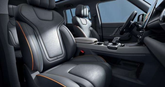 تتوفر المقاعد بكسوة جلدية، مع إمكانية ضبط مقعد السائق كهربائيًا في 6 اتجاهات، ومقعد الراكب الأمامي يدويًا في 4 اتجاهات، بالإضافة إلى تهوية المقاعد الأمامية. المقعد الخلفي يمكن طيه بشكل مسطح، ويتوفر حامل أكواب خلفي، وذراع وسطى في الأمام.