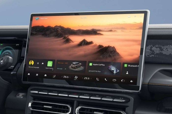 تأتي المقصورة مزودة بشاشة عدادات رقمية كاملة قياس 10.25 بوصة، إلى جانب شاشة وسطية للمعلومات والترفيه قياس 15.6 بوصة تدعم Apple CarPlay وAndroid Auto. تشمل المزايا التقنية الشحن اللاسلكي، التحكم الصوتي الذكي في عدة مناطق داخل السيارة، تشغيل المحرك عن بعد، ونظام صوتي مكوّن من 8 سماعات، كما يوجد منافذ USB (Type-A وType-C) في الأمام والخلف، ومنافذ طاقة 12 فولت في الأمام وصندوق الأمتعة.