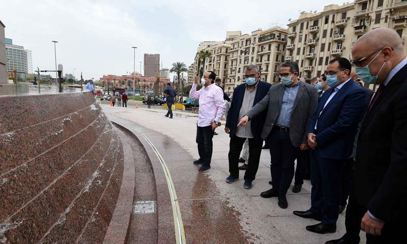 واستمع رئيس الوزراء لشرح تفصيلي حول الموقف التنفيذي للأعمال التي يتم تنفيذها، وخلال تفقد أعمال تطوير وتجميل ميدان التحرير، تمت الإشارة إلى أن فكرة مشروع التطوير تقوم على التصميم الفرعوني، حيث تم نقل المسلة الفرعونية ووضعها بالميدان، وكذا أربعة كباش فرعونية سيتم وضعها حول المسلة لإضفاء الطابع الفرعوني على الميدان بتصميم أحد المكاتب الاستشارية.