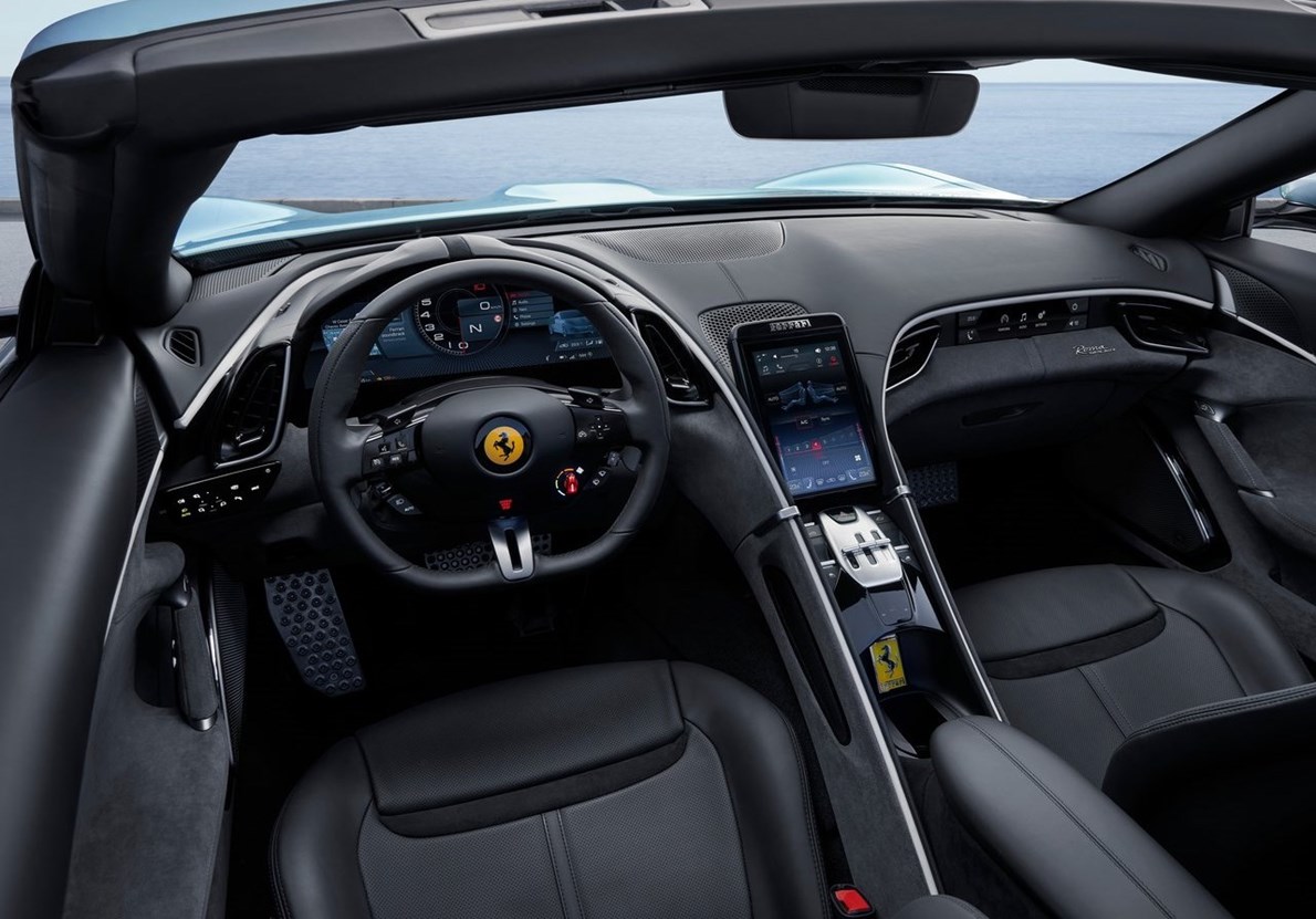 وفي هذا الصدد، يتميز الهيكل الخارجي لسيارة روما سبايدر بسقف ناعم يمكن طيه في 13.5 ثانية فقط، حتى أثناء القيادة بسرعات تصل إلى 60 كم في الساعة. أما بالنسبة لمقصورتها الداخلية، فهي توفر ترتيبًا للمقاعد 2+2، مما يضمن راحة وأسلوبًا عاليين للسائق والركاب. يتميز نظام المعلومات والترفيه بشاشة تعمل باللمس مقاس 9.4 بوصة، مما يوفر تحكمًا بديهيًا واتصالًا متقدمًا.