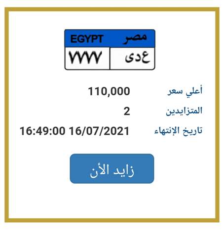 أعلى سعر للتزايد: 100 ألف جنيه مصري.