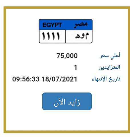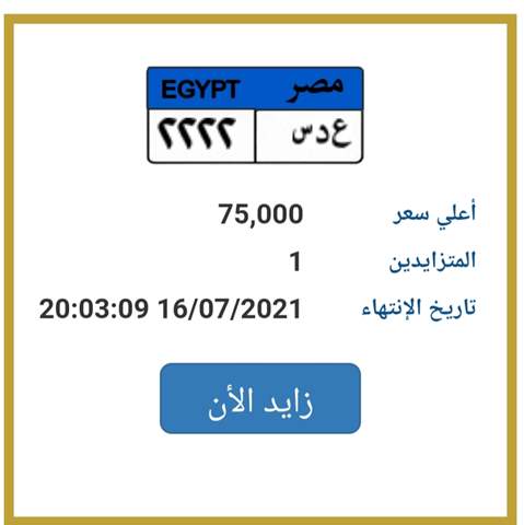 أعلى سعر للتزايد: 75 ألف جنيه مصري.