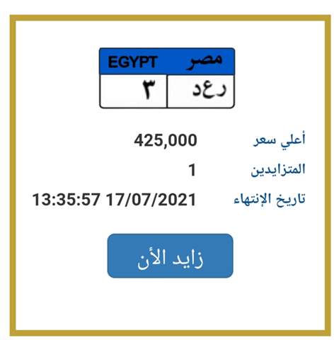 أعلى سعر للتزايد 425 ألف جنيه مصري.