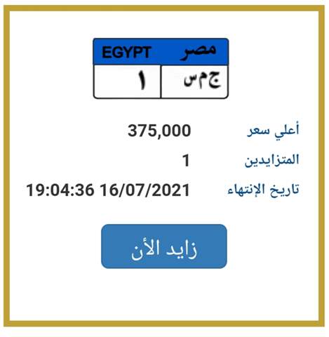 أعلى سعر للتزايد: 375 ألف جنيه مصري.