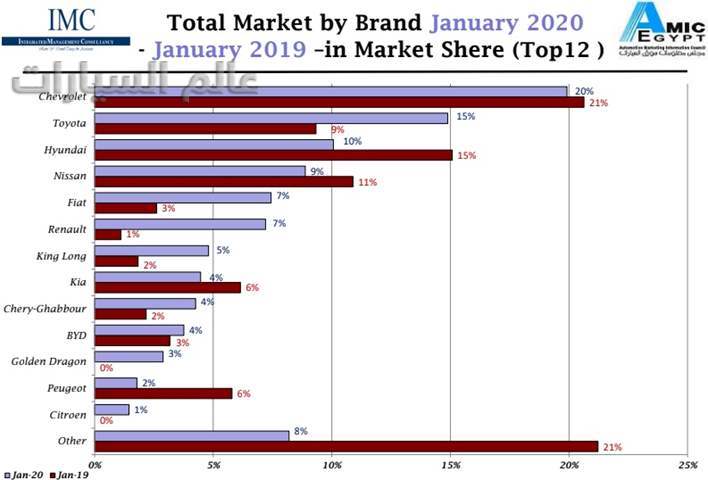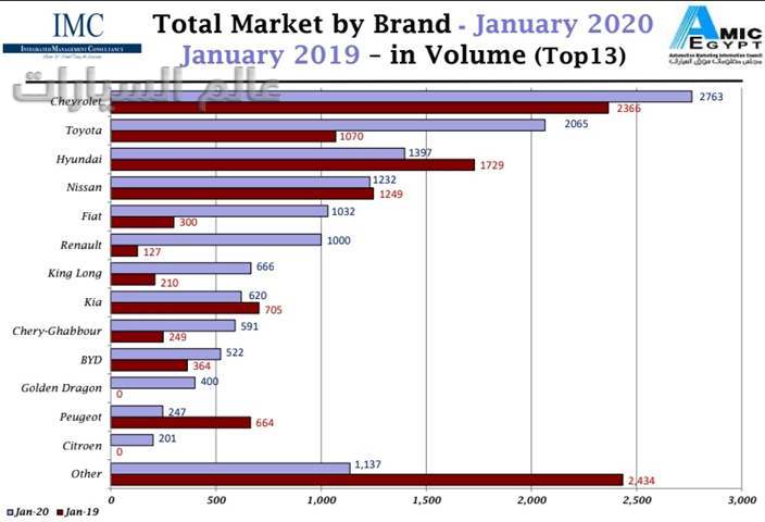 تمكنت العلامة التجارية شيفروليه من التربع على عرش مبيعات السيارات في مصر خلال شهر يناير لعام 2020 بعد أن باعت 2763 وحدة بنسبة 20% من مبيعات السوق، متخطية مبيعاتها خلال يناير 2019 والتي بلغت 2360 وحدة بنسبة مبيعات 21% من مبيعات نفس الشهر للعام السابق.