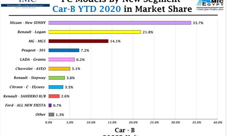 بينما جاءت في المرتبة الثانية سيارة رينو لوجان بنسبة 21,8% ما يُعادل 4514 وحدة، تلتها مباشرة في المركز الثالث سيارة إم جي5 بنسبة 14,1%، بعدد وحدات وصل إلى 2919 وحدة.