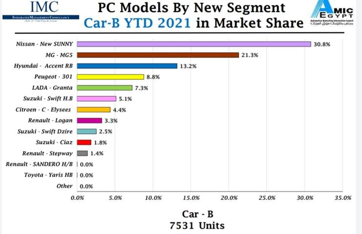 اقتنصت سيارة نيسان صني النصيب الأكبر من الحصة السوقية لمبيعات السيارات السيدان الاقتصدية "CAR- B" خلال أول شهرين من عام 2021، حيث بلغت نسبة مبيعاتها 30,8%، ما يعادل 2320 من إجمالي مبيعات فئتها والذي بلغ 7531 وحدة، وذلك وفقًا لما ذكرته إحصائيات مجلس معلومات سوق السيارات "أميك" الصادر عن شهر فبراير الماضي.