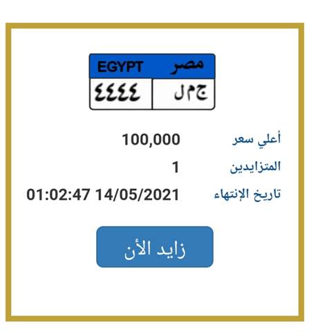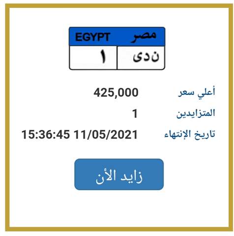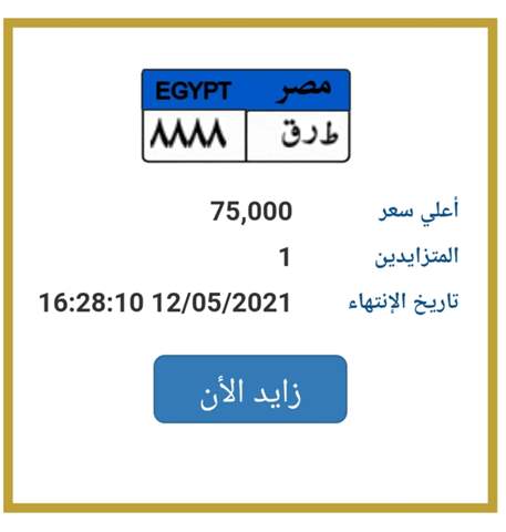 أعلى سعر للمزايدة: 75 ألف جنيه مصري.