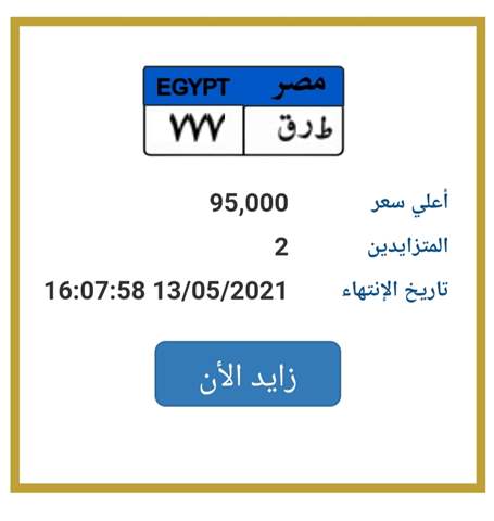 أعلى سعر للمزايدة: 95 ألف جنيه مصري.