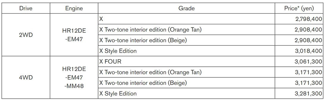 يبدأ سعر نيسان كيكس في اليابان من 20,302 دولار، ويصل إلى 23,805 دولار للإصدار رباعي الدفع.