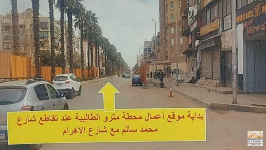 أعلنت محافظة الجيزة بالأمس أنه سيتم تسليم موقع أعمـال "محطة مترو انفاق الطالبية" للشركة المنفذة بداية من تقاطع شارع الأهرام مع شارع محمد سالم حتى شارع عزیز المصري بطول مايقرب من (٥٠٠م) وبعرض مايقرب من (١٨م) في الإتجاه القادم من المنطقة الأثرية أتجاه ميدان الجيزه فقط، ضمن تسليم عدد (٦) محطات مترو انفاق الخـط الرابع بشارع الأهرام.