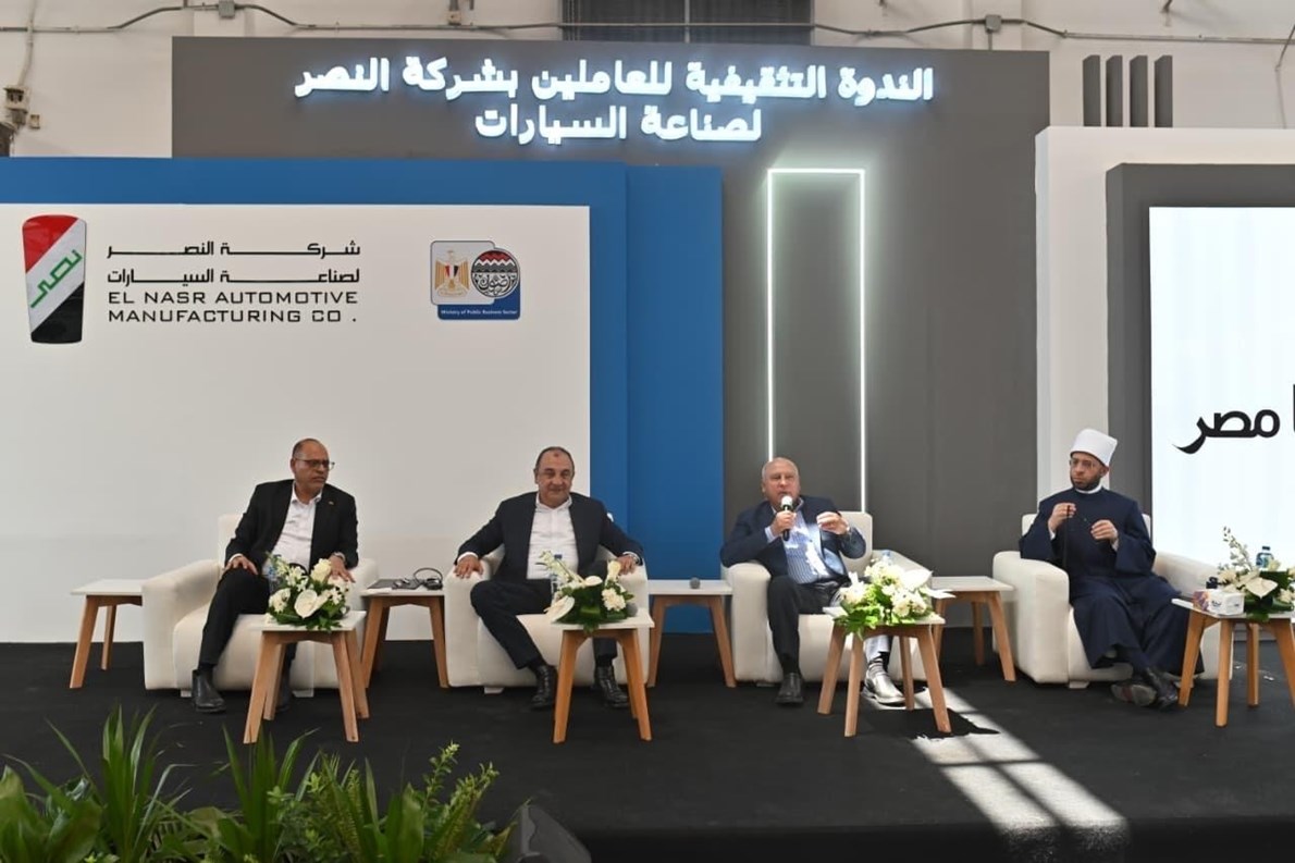 ومن جانبه رحب المهندس محمد شيمي وزير قطاع الأعمال العام، بالفريق كامل الوزير نائب رئيس مجلس الوزراء للتنمية الصناعية وزير الصناعة والنقل، والدكتور أسامة الأزهري وزير الأوقاف، والسيد محمد جبران وزير العمل، كما وجه التحية للعاملين بشركة النصر للسيارات، مؤكدًا اعتزازه باللقاءات المستمرة معهم والوجود بينهم، في هذا الصرح الصناعي العريق، إحدى القلاع الراسخة للصناعة الوطنية واسم من ذهب في ذاكرة المصريين. وأكد أن اسم "النصر" لم يكن يومًا مجرد علامة تجارية، بل ظل دائمًا عنوانًا لإرادة المصريين ورمزًا للقدرة على البناء والتحدي والانتصار على الصعاب. وأضاف أنه بفضل دعم الدولة بقيادة فخامة الرئيس عبد الفتاح السيسي، وبتفاني العاملين وإخلاصهم، نعيد إحياء هذا الكيان العريق بعد سنوات طويلة من التوقف. وأشار الوزير إلى أن عجلة الإنتاج قد عادت للدوران بالفعل، حيث بدأت خطوط الشركة في إنتاج الأتوبيسات التي تحمل علامة "النصر" بفخر، مثل "نصر سكاي" والميني باص "نصر ستار"، بمكوّن محلي مرتفع، مع العمل على إنتاج أتوبيسات صديقة للبيئة تعمل بالغاز الطبيعي والكهرباء، وإضافة طرازات وأحجام مختلفة من المركبات لتلبية احتياجات السوق.