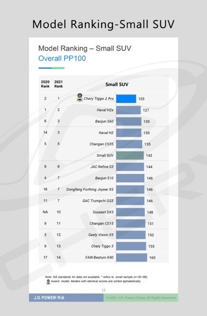 وتعتبر شيري دائمًا أن الجودة هي أساس صناعتها وتتولى زمام المبادرة في إنشاء نظام إدارة جودة عالمي بين شركات السيارات الصينية، حيث يعد فريق شيري لمراقبة الجودة هو جزء مهم من نظام إدارة الجودة. لطالما اتبعت شيري نهجًا يركز باستمرار على تحسين رأي المستخدم في المنتج وتجربة التسويق. وفي تقرير دراسة اعتمادية السيارات في الصين (VDS) لعام 2021 الصادر عن جي دي باور، تصدرت شيري تيجو 2 برو قائمة سيارات الدفع الرباعي الصينية الصغيرة، مما يعكس جودة شيري الفائقة.
