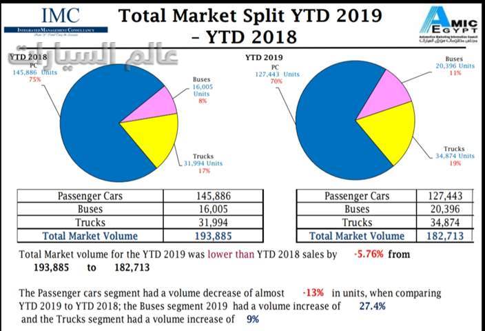 فيما استطاعت مبيعات الأتوبيسات الاستحواذ على نسبة 11% ما يساوي 20,396 وحدة للعام الماضي مقابل نسبة 8% بعدد وحدات بلغ 16,005 من عام 2018.