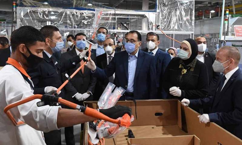 قام الدكتور مصطفى مدبولي، رئيس مجلس الوزراء، اليوم السبت، بزيارة عدد من المصانع بمدينة السادس من أكتوبر، حيث بدأها بتفقد المصنع الجديد الذي أقامته شركة "إس إي وايرنج سيستمز إيجيبت"، لإنتاج الضفائر الإلكترونية للسيارات الكهربائية، وهي إحدى شركات "سوميتومو" العالمية، كما ورافقه خلال الزيارة التفقدية نيفين جامع، وزيرة التجارة والصناعة، والمستشار محمد عبد الوهاب، الرئيس التنفيذي للهيئة العامة للاستثمار والمناطق الحرة.