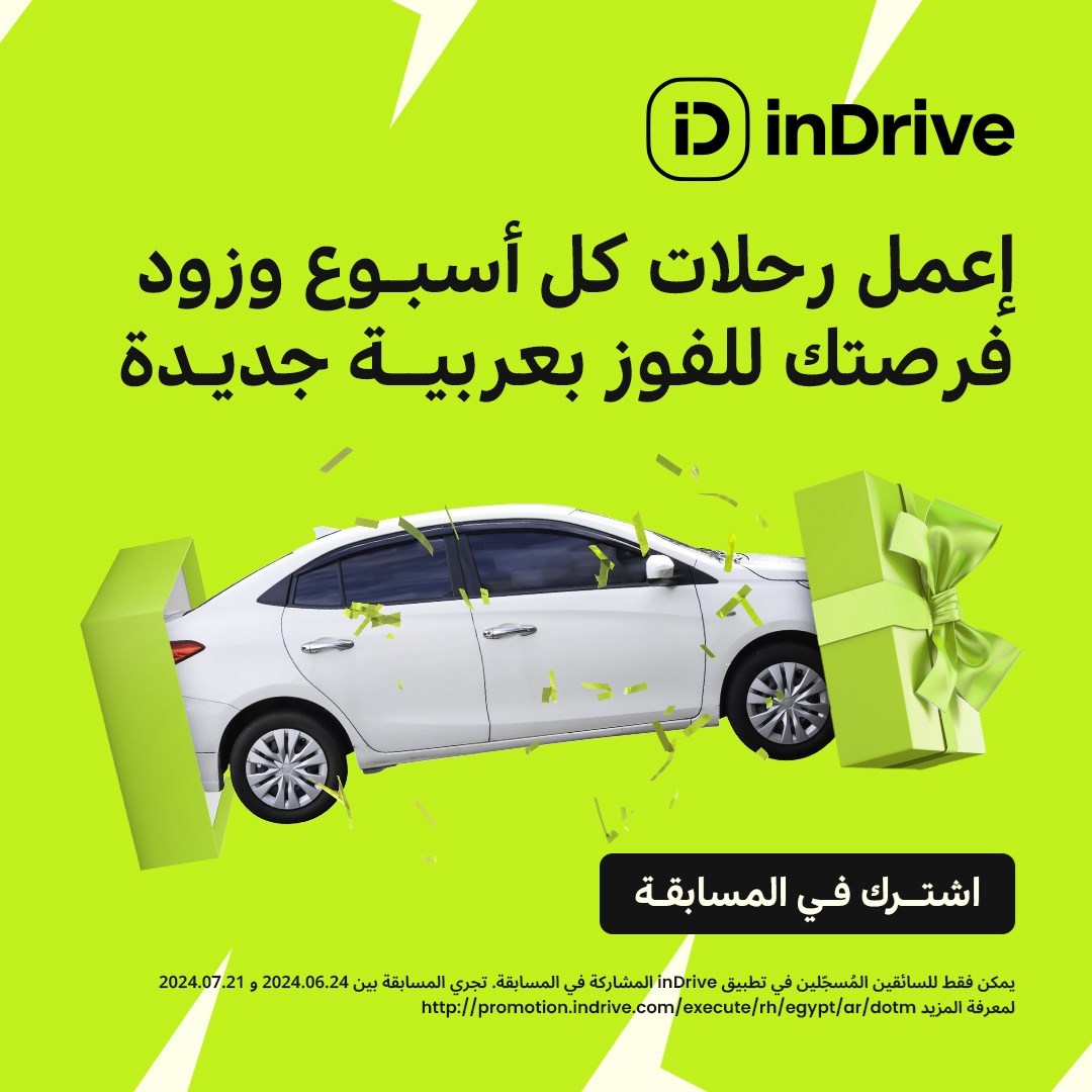 أطلق تطبيق "إندرايف inDrive" الخاص بالنقل الذكي في مصر، مسابقة جديدة لسائقيه تمنحهم فرصة للفوز بـ سيارة مجانية، وذلك على غرار المسابقة التي أطلقها خلال شهر رمضان الماضي ومنحت خمس سائقين رحلات عمرة مجانية وذلك تأكيدا على التزامه و تشجعيه لسائقيه.