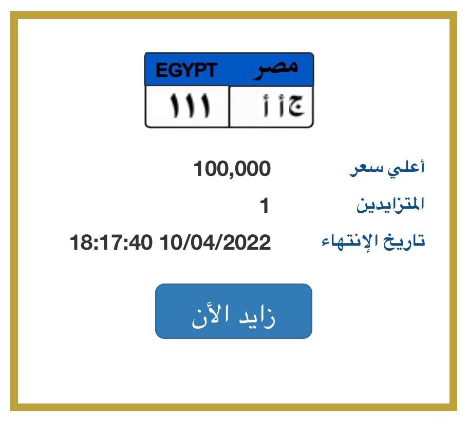 أعلى سعر للتزايد: 100.000 جنيه مصري