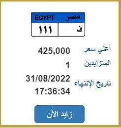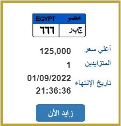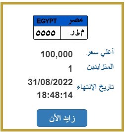 وطرح الموقع لوحات ينتهي تاريخ المزايدة عليها اليوم 31 أغسطس 2022 وأخرى بتواريخ 1 و 2 و3 سبتمبر المقبل..وتنتهي المزايدات في بعض اللوحات في حدود الساعة الـ 6 مساء اليوم وأخرى ممتدة حتى الثالثة مساء يوم السبت 3 سبتمبر.