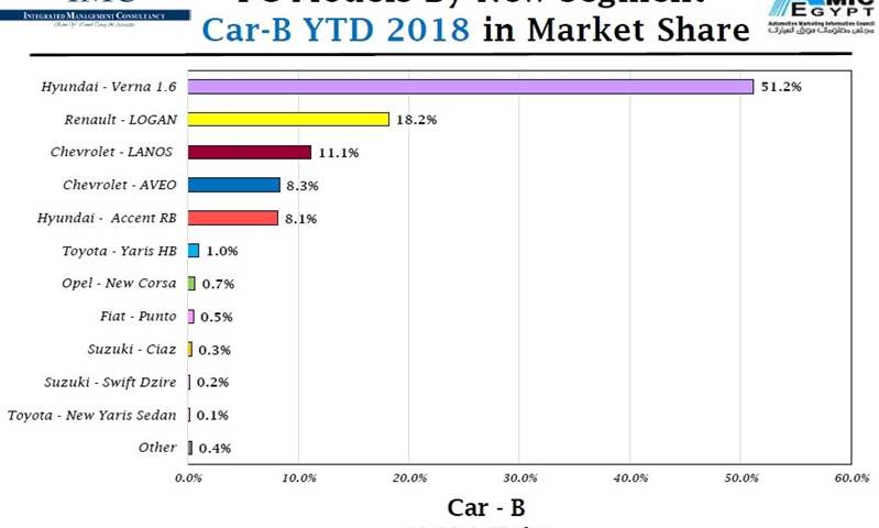 يوضح التقرير أن مبيعات الفئة B من قطاع السيارات السيدان فى السوق المحلي سجلت حوالي 12424 سيارة خلال ثمانية أشهر، منها 51.2% أو ما يعادل 6357 سيارة بينما حققت شيفروليه لانوس 11.1% أو ما يعادل 1383 سيارة، وهو ما يعادل 63.3% من مبيعات هذا القطاع أو 7740 سيارة.