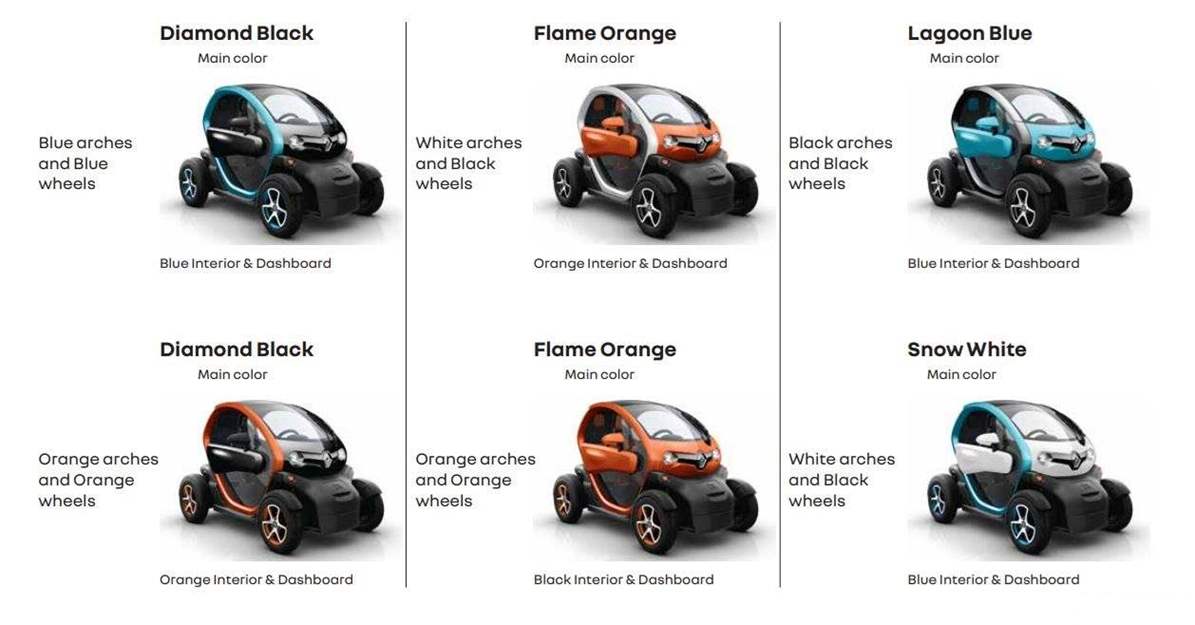كما أشرنا في المقدمة تتمتع تويزي بتصميم خارجي فريد يتكون من 3 ألوان معًا، ويأتي الجزء السفلي بلون أسود ثابت، بينما يمكن اختيار الجزء العلوي من بين 6 تشكيلات هم: لون أساسي برتقالي مع جوانب بيضاء، لون أساسي برتقالي مع جوانب برتقالية، لون أساسي أسود مع جوانب برتقالية، لون أساسي أسود مع جوانب زرقاء، لون أساسي أزرق مع جوانب سوداء، لون أساسي أبيض مع جوانب زرقاء.