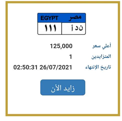 أعلى سعر للتزايد: 125 ألف جنيه مصري.