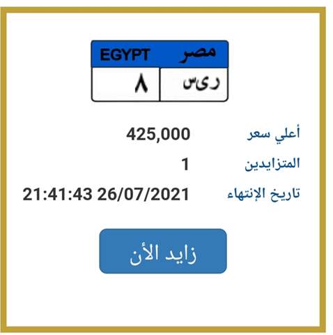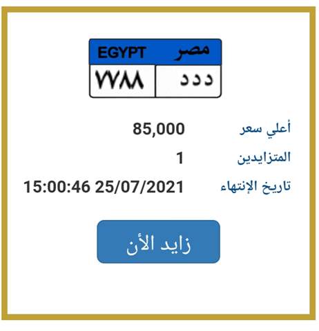 أعلى سعر للتزايد: 85 الف جنيه مصري.
