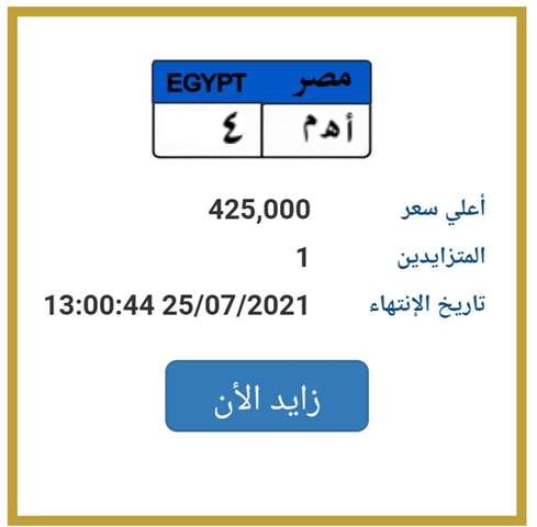 أعلى سعر للتزايد: 425 ألف جنيه مصري.