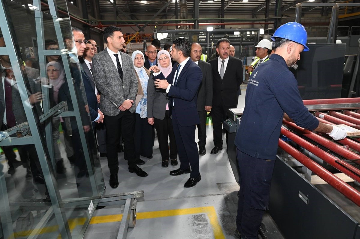 وتفقد هاشم خطوط إنتاج الزجاج المعماري عالي الأداء بمصنع "دلمار"، حيث تابع سير العمل على أحدث ماكينات التقسية والزجاج المزدوج والقطع والتشطيب المؤتمتة، واطلع على عمليات إنتاج الزجاج المزخرف باستخدام الطباعة الأسطوانية، بالإضافة إلى مجموعة قطاعات الألومنيوم المنتجة بالمصنع، بما في ذلك الزوايا، القضبان، الأنابيب، المستطيلات، والصفائح المسطحة.