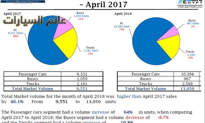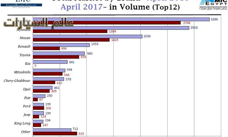 تشير أرقام تقرير مجلس معلومات سوق السيارات المصري (الأميك) عن شهر أبريل إلى استحواذ 6 علامات على حوالى 80% من مبيعات السيارات خلال ذلك الشهر، فى استمرار لنفس النمط السائد فى السوق المحلي منذ سنوات ,وقد شهدت مبيعات السيارات الإجمالية خلال أبريل بيع 13950 سيارة فى جميع القطاعات ( ملاكى – أتوبيسات – نقل) مقابل 9551 سيارة خلال نفس الفترة من العام الماضى .