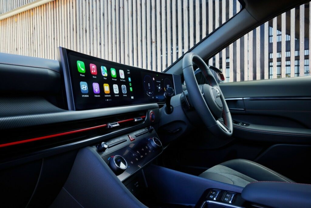 وبخلاف الشاشات المذكورة تتوفر أيضًا شاشة عرض رأسي HUD مقاس 12 بوصة، وقد تم أيضًا تحديث الكونسول الوسطي وتغيير مكان ناقل الحركة، مع وجود تحكم shift-by-wire في مواجهة ناقل الحركة، ويتوفر نظام صوت مكون من 12 سماعة من Bose بتكنولوجيا CenterPoint 360.. بالنسبة للإصدار N Line فمن ضمن الخصائص التي تميزه فرش جلد "نابا" مع تطعيمات بلون أحمر وخياطة بنفس اللون وحليات معدنية بزخارف متقاطعة، ومن المقرر أن تأتي جميع السيارات في أستراليا مجهزة بخدمات Hyundai BlueLink بشكل قياسي.