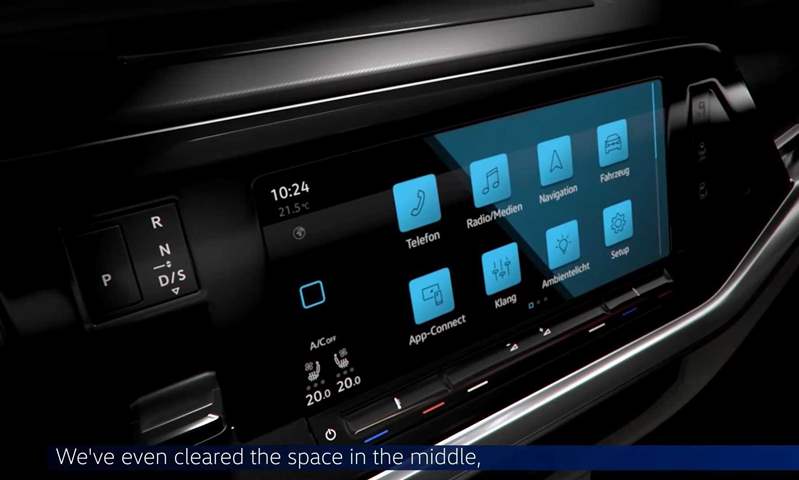 أما في مقدمة المقصورة الداخلية، فقد كشفت "فولكس فاجن" عن شاشة وسطية مزدوجة Golf-esque لتجمع بين مزايا شاحنة صغيرة، ومزايا السيارة العائلية الصغيرة، وذلك عبر حزمة تجهيزات إضافية تشبه السيارة العائلية.