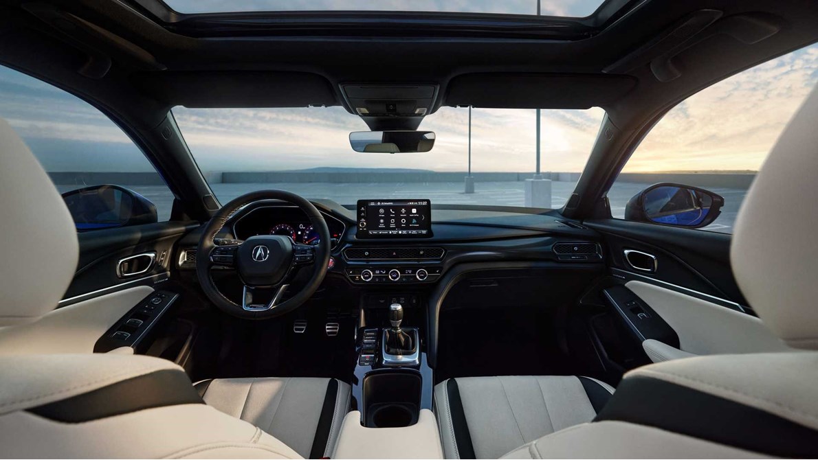في الداخل ، تأتي إنتيجرا مع مجموعة عدادات رقمية مقاس 10.2 بوصة ونظام معلومات ترفيهي بشاشة تعمل باللمس مقاس 7 بوصة. تأتي جميع الموديلات بفرش جلدي صناعي ، ومتوفر بألوان الأبنوس ، والأحمر ، والأوركيد، مع مقاعد أمامية مدفأة قياسية، وكرسي السائق لديه تعديل كهربائي بثمانية اتجاهات.