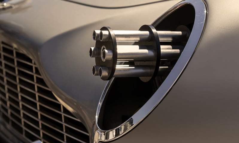 تم تجهيز DB5، التي ظهرت في الفيلمين Goldfinger وThunderball مع شون كونري، بمقاعد القاذف وآلات تمزيق الإطارات والمدافع الرشاشة، إلى جانب درع مضاد للرصاص وموزعين للزيت والماء والدخان.