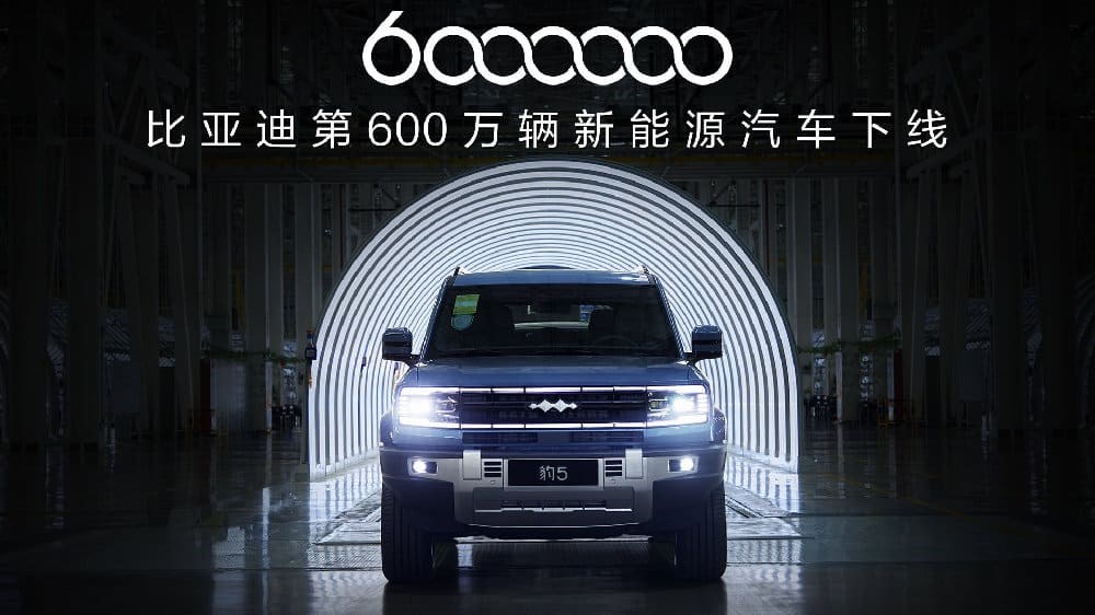 في الرابع والعشرين من شهر نوفمير الجاري احتفلت BYD بخروج السيارة رقم 6 مليون من خط إنتاجها للسيارات التي تعمل بالطاقة الجديدة NEV، وذلك بعد 15 عامًا منذ بداية رحلتها في عالم السيارات الكهربائية والهجينة، وقد تصادف أن تكون هذه السيارة هي الـSUV متوسطة الحجم "ليوبارد 5" الهجينة تحت علامة Fang Cheng Bao التابعة للمجموعة الصينية، التي بدأت رحلتها توًا في التاسع من الشهر الجاري، بعد تقديمها في أغسطس.