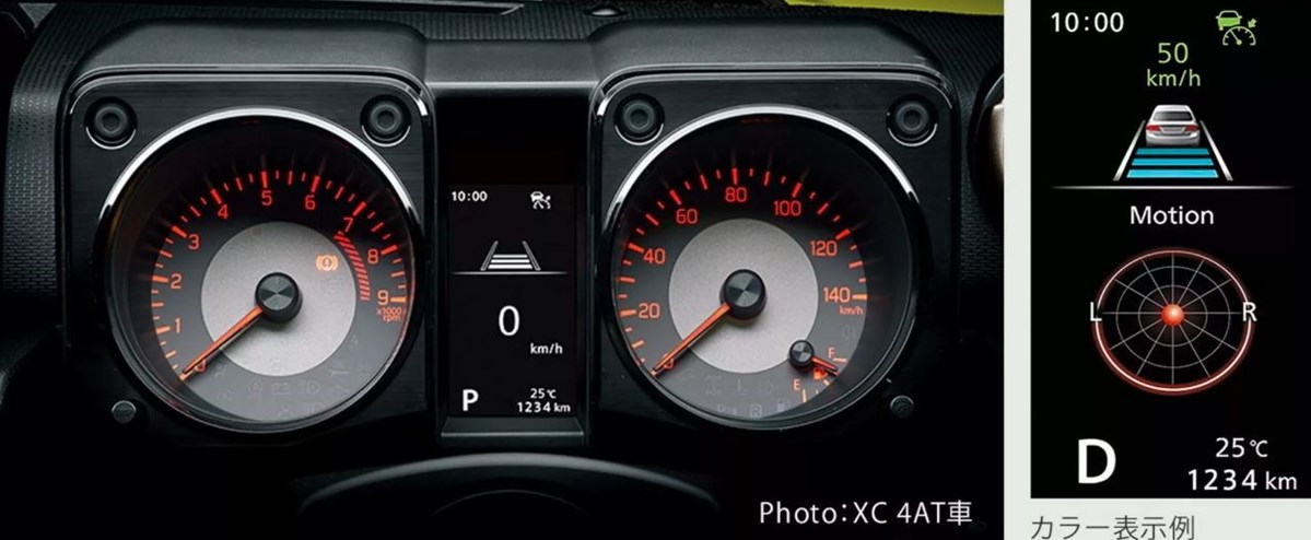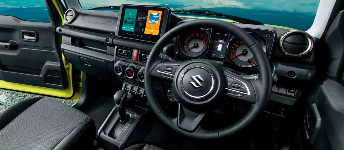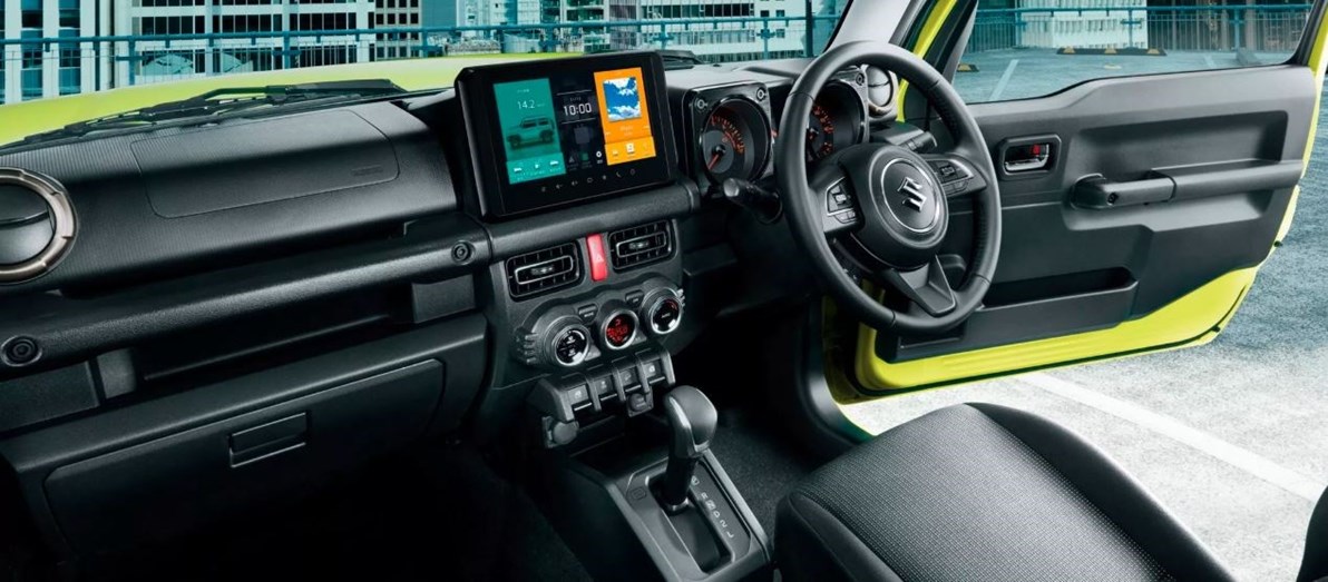 داخل المقصورة حصلت لوحة العدادات على شاشة صغيرة مقاسها 4.2 بوصة تستقر بين العدادين التناظريين، ويمكن الحصول على شاشة ترفيه ومعلومات مقاس 9 بوصة، هي نفسها الموجودة في السيارة "سوزوكي سويفت"، ولكن تستمر الفئات الأولى من "جيمني" بدون شاشات كما هي.