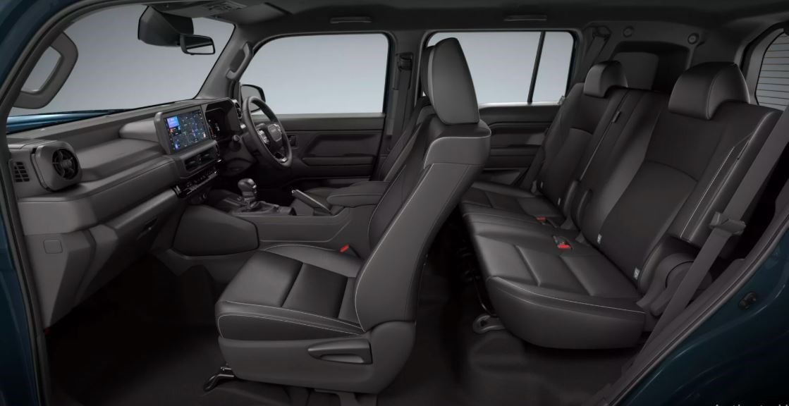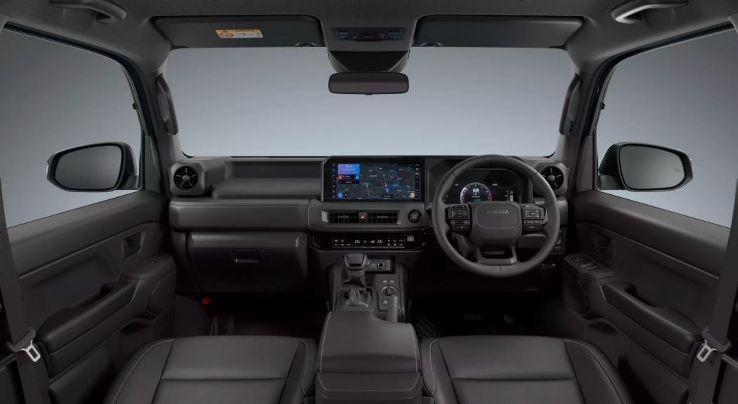 يمتد التكوين البلاستيكي الأسود المهيمن على الهيكل الخارجي لتظهر بصمته بوضوح في تصميم لوحة القيادة الداخلية، وبالنسبة للبيانات التفصيلية والتجهيزات فلم يتم الإفصاح عنها، ولكن من خلال الصور الرسمية تحتوي مقصورة FJ على شاشة عدادات رقمية وبجوارها شاشة الترفيه والمعلومات، وتتنوع فتحات التكييف لتكون مستديرة كالمروحة الكلاسيكية على الجانبين ومستطيلة في المنتصف.
