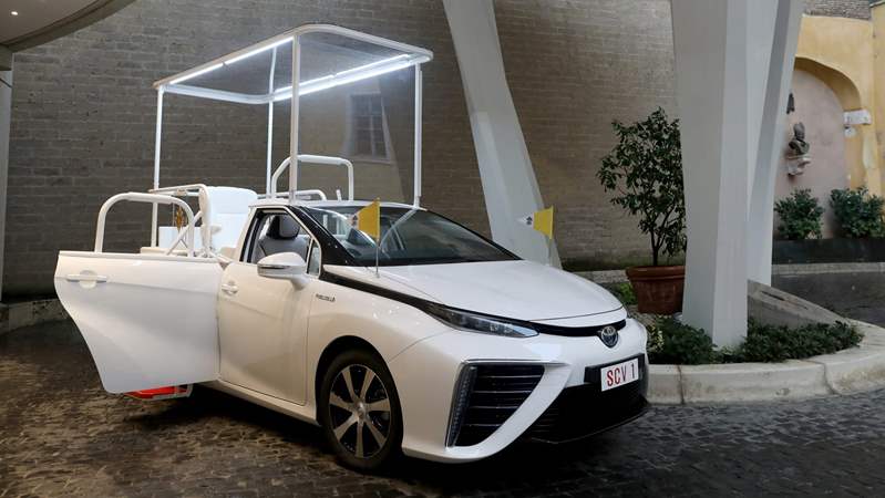 وأعلنت تويوتا عن انضمام فردٍ جديدٍ ضمن عائلة سيارات البابا وهي تويوتا "ميراي - Mirai" أحدث سيارات الدفع الرباعي في الفاتيكان والتي تعمل بالهيدروجين، والتي تقول عنها الولاية البابوية أنها ستؤمن مخاوف البابا بشأن تغير المناخ.