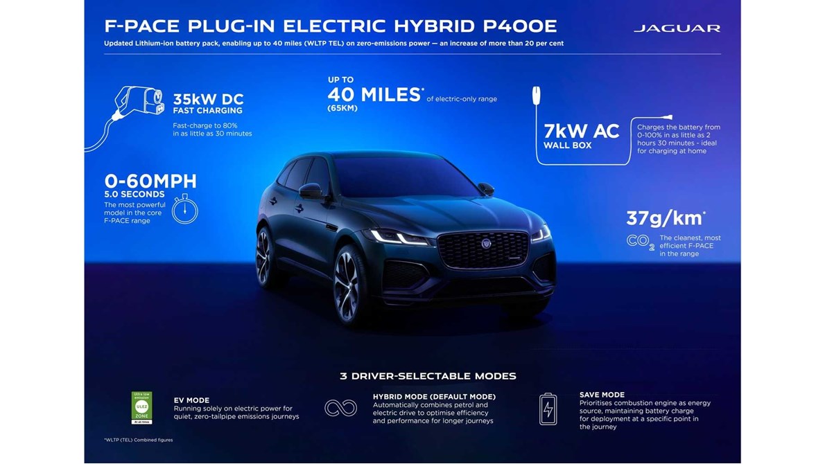 فوفقًا للبيان الصحفي الصادر اليوم عن شركة "تاتا موتورز" المالكة لجاجوار.. تغطي آخر التحديثات التصميم الخارجي والتكنولوجيا والتجهيزات كما ستحصل النسخة الهجين على بطارية مطورة.