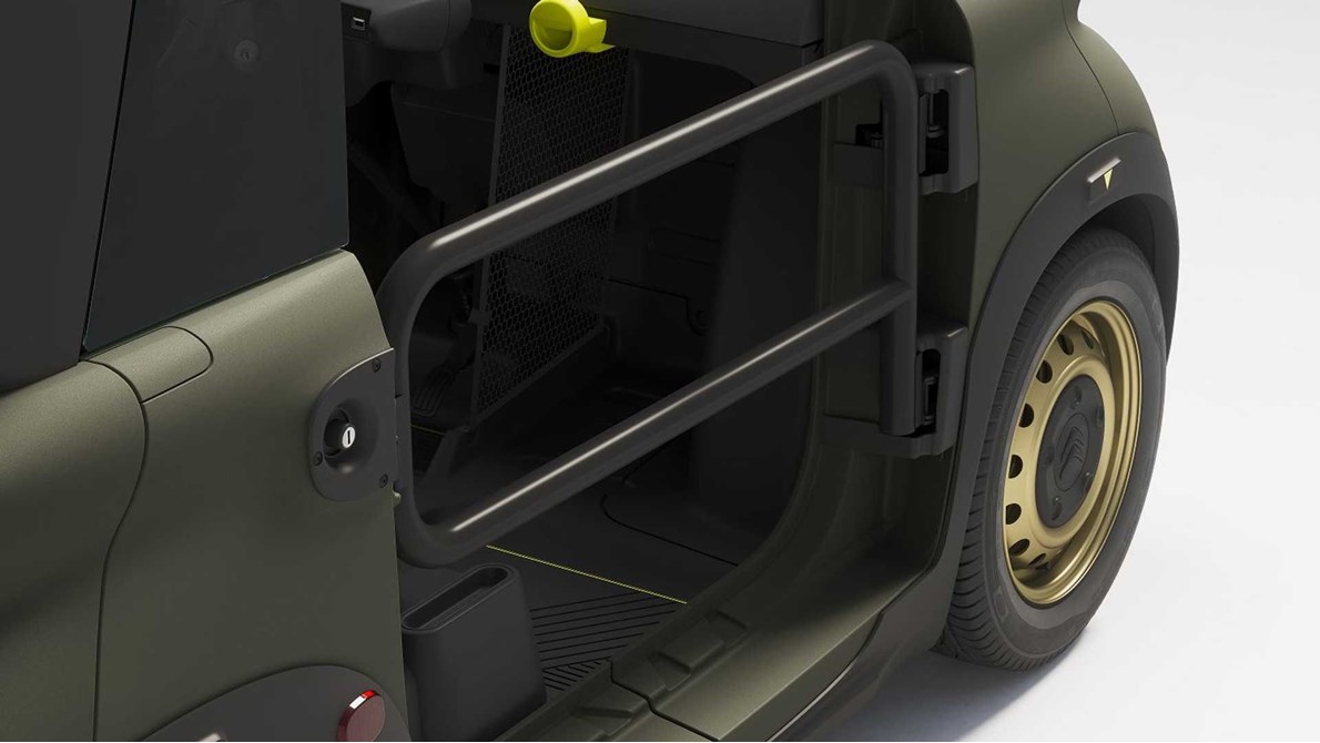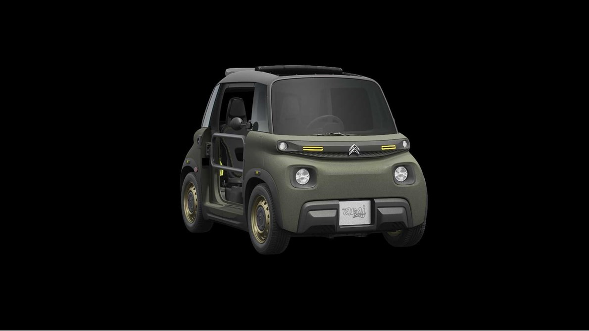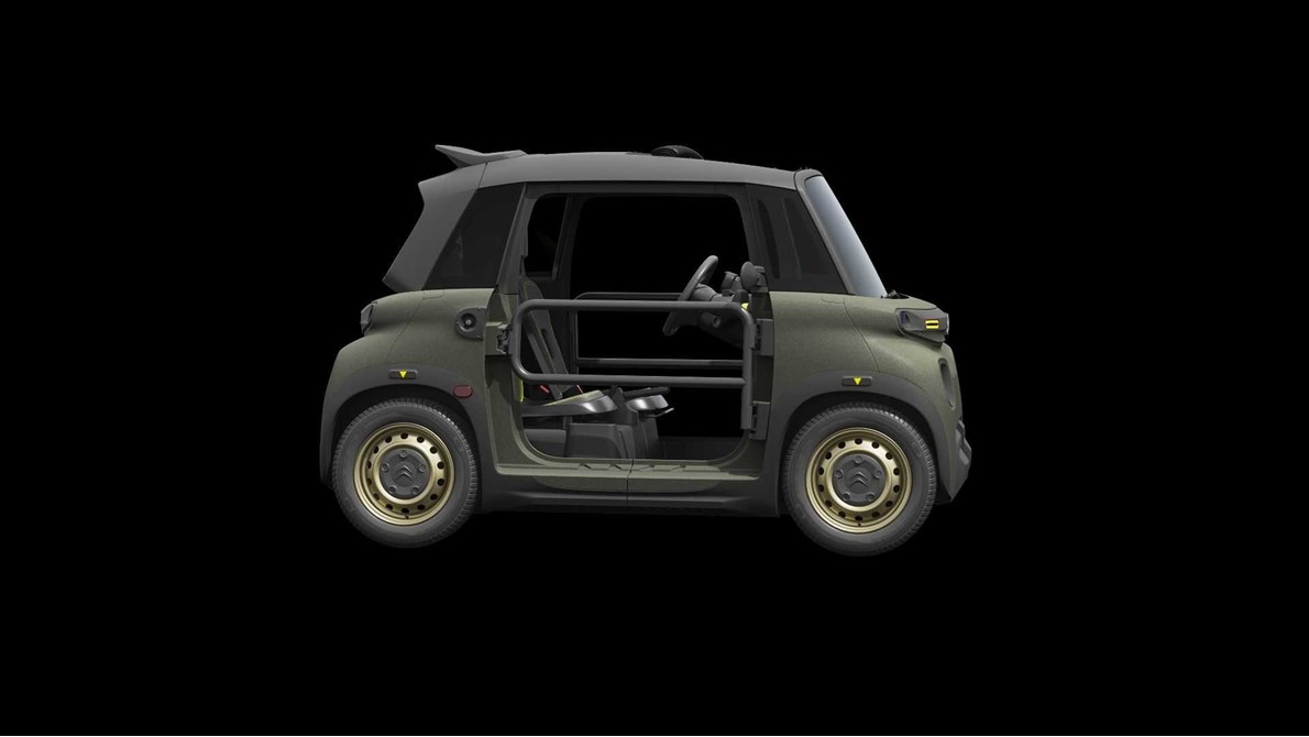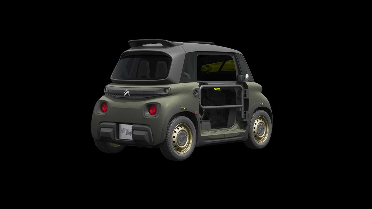 يأتي إصدار الإنتاج من Citroën My Ami Buggy بهيكل أخضر داكن مع بعض اللمسات الصفراء الزاهية، ولديها أيضًا بعض اللمسات البرونزية والسوداء.