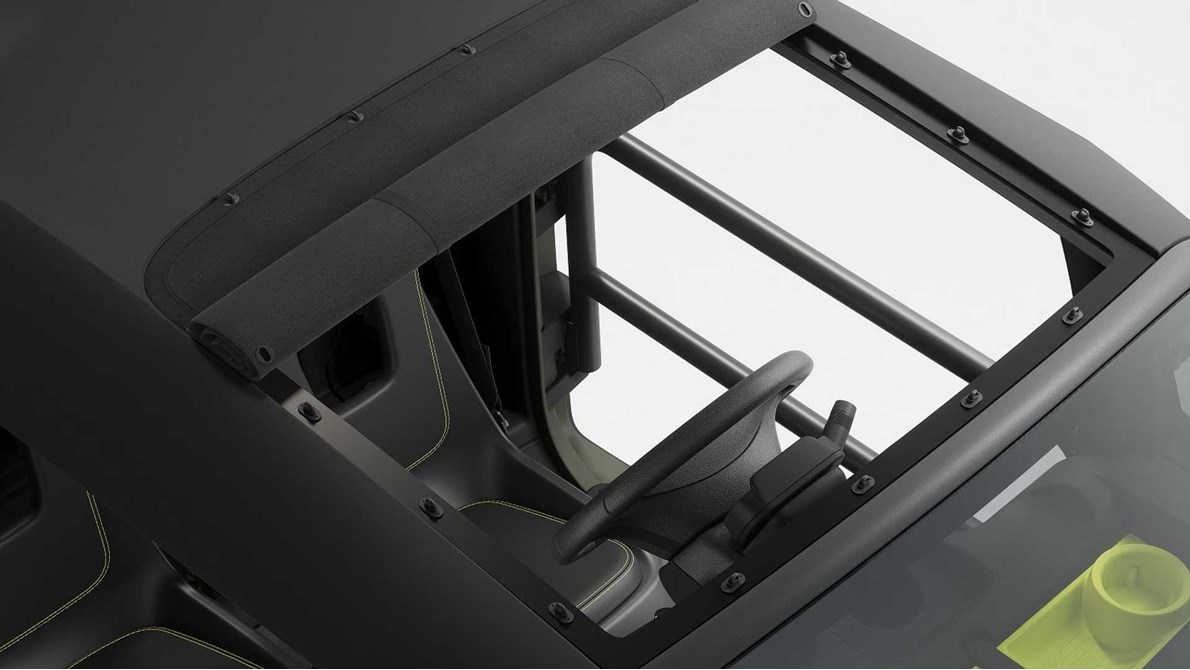 في الأعلى، تحتوي My Ami Buggy على سقف قماش يمكن إزالته وتخزينه خلف المقاعد للحصول على تجربة سقف مفتوح على الطرق الوعرة.