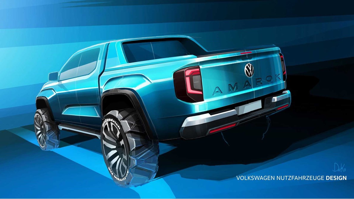 تستمر فولكس فاجن في حملتها الدعائية للجيل القادم من السيارة أماروك، فبعد أن أصدرت مجموعة صغيرة من الرسومات التشويقية في يناير الماضي، تضيف الآن رسمين تخطيطيين يعرضان الشاحنة الصغيرة من الجانب والخلف.