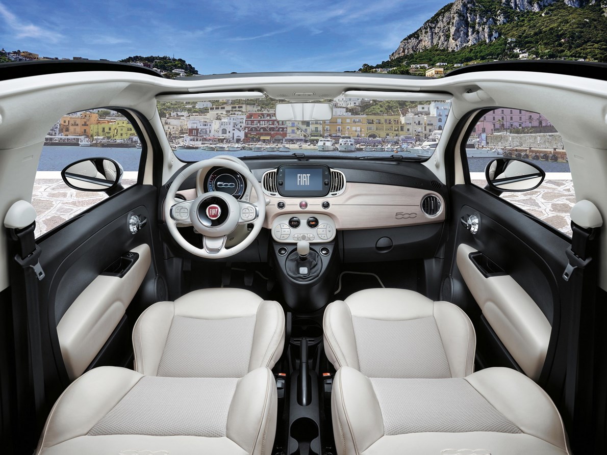 تتوافر دولتشي فيتا 500 في هيكل Cabrio 500 الذي يتميز بطلاء أبيض وسقف ناعم باللون البيج، وعجلات من سبائك الألومنيوم مقاس 16 بوصة وأغطية مرايا من الكروم. في الداخل تمت ترقية المقصورة بمقاعد عاجية منجدة بجلد Frau، ومظهر خشبي فاتح اللون للوحة القيادة، ومقبض ناقل حركة جلدي.
